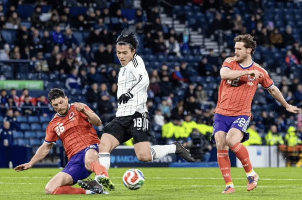 目前,日本队世界排名第19位,而苏格兰则是第38位。比赛开始后,客场作战的日本队展现了强大的控场能力,牢牢掌握比赛的主动权。全场比赛,日本队控球率55%,射门18次,而对手只有8次射门。